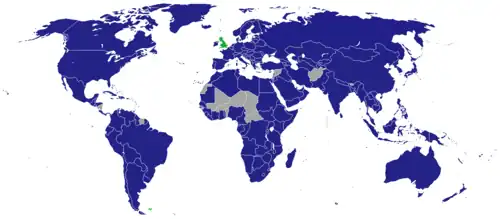 The following 166 countries maintain embassies and high commissions in London as their primary diplomatic missions to the United Kingdom.[1]