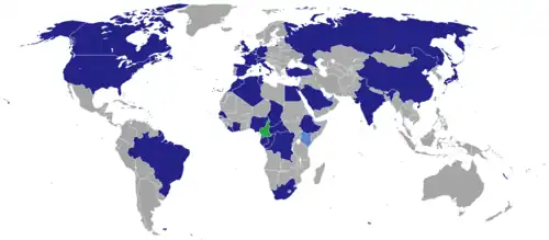 - ^ a b c d e f g h i j k l m n o p q r s t u v w x y z aa ab ac ad ae af ag ah "Ambassades et Hauts Commissariats du Cameroun" [Embassies and High Commissions of Cameroon]. Ministry of Foreign Affairs of Cameroon (in French). Retrieved 5 June 2024.