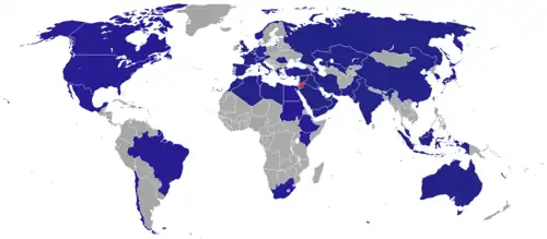 - ^ a b c d e f g h i j k l m n o p q r s t u v w x y z aa ab ac ad ae af ag ah ai aj ak al am an ao ap aq ar as at au av aw ax ay az ba bb bc bd be bf bg "التمثيل الدبلوماسي". Ministry of Foreign Affairs of Jordan (in Arabic). Retrieved 24 January 2024.
