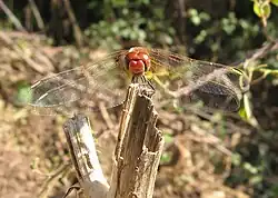 Most darters seen in Menorca with a very red colouring are S. fonscolombii but some are C. erythraea which occurs in many of the same locations. On close observation these two species can be told apart as they have quite different body shapes. Also S. fonscolombii usually oviposits in tandem whereas female C. erythraea oviposit solo.