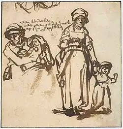 Studies of a Woman with Two Children | c. 1636 | ? | ? | Peck Collection | Inscribed een kindekin met een oudt jack op syn hoofdken |