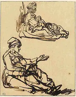 Two Studies of a Woman Seated on the Ground | c. 1633-1634 | ? | ? | Musée du Louvre, Paris | The drawing is related to the painting W110