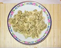 Kalduny are stuffed dumplings made of unleavened dough in Belarusian, Lithuanian, and Polish cuisines.