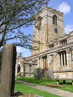 1870–72 | The church was rebuilt, other than its 16th-century tower. The church is constructed in sandstone with slate roofs, and is in Perpendicular style. The body of the church consists of a nave with a clerestory, a tall south aisle, a low north aisle, north and south chapels, and a chancel. The oak benches contain finely carved tracery.[13][40][41][42] | II* |