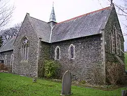 1873–74 | Built in slate with red sandstone dressings, the church has a slate roof with tile cresting. It is described by Brandwood et al. as a "very modest affair". The church cost about £1,400 and seats about 150 people. It contains lancet windows, a rounded apse, and a timber bellcote.[90][91][92][93] | II |