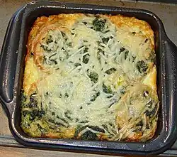 | Tunisian tajine | Savory | Tunisia | A baked egg dish that has a ragout; a starch element is added and it is often served in squares. | |