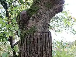 Until the early 20th century, both wych cultivars and those of large-leaved European hybrids were often classified as Ulmus montana.[13][22][20] The likely hybrid origin of some of the latter had, however, long been suspected,[12] English carpenters for example referring to their 'Dutch elm' as 'bastard elm',[22] while nurserymen knew that popular cultivars like 'Belgica' and 'Vegeta' could be raised reliably only by vegetative propagation or cloning, their seedlings not coming true to type.[22] The nomenclature of hybrids was systematised by the mid-20th century.[11] Research leading to the selection and breeding of cultivars resistant to Dutch elm disease was under way in the Netherlands from the 1920s, in the US from the 1930s, in Italy from the 1970s, and in Spain from the 1990s.[34]