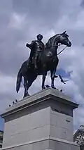 Statue of Duke of Cambridge | Whitehall, opposite the War Office Building | 1907 | Adrian Jones | Statue on pedestal | Bronze and stone | Grade II | Q19516037 | John Belcher (architect)[19] | |