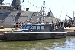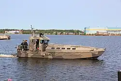 14.2-metre 14-tonne landing craft. Armed with H&K GMG grenade machine guns or ITKK 96 heavy machine guns. Capable of transporting 20 soldiers (plus crew of 2) or 3 tonnes of cargo. Commercially called Marine Alutech Watercat M12. | |||