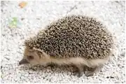 Erinaceidae is a family of small mammals in the order Eulipotyphla. A member of this family is called an erinaceid, and the family includes hedgehogs and gymnures. Erinaceidae is one of four families in the order Eulipotyphla.[1] They are found in Africa, Europe, and Asia, primarily in forests, shrublands, savannas, and grasslands, though some species can also be found in deserts, rocky areas, or caves. They range in size from the gymnures in the Hylomys genus, at 9 cm (4 in) plus a 1 cm (0.4 in) tail, to the moonrat, at 46 cm (18 in) plus a 30 cm (12 in) tail. Erinaceids are omnivorous and primarily eat insects and small vertebrates such as lizards, though they also consume plants, eggs, and fungi. Hedgehogs all have spines on their backs, while gymnures have fur. No erinaceids have population estimates, but the Hainan gymnure and Dinagat gymnure are categorized as endangered species.