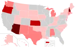 | 0 | California, Colorado, Florida, Georgia, Idaho, Illinois, Indiana, Maryland, Minnesota, Mississippi, Missouri, Nevada, North Dakota, Pennsylvania, Tennessee, Virginia, West Virginia, Wisconsin | 18 |