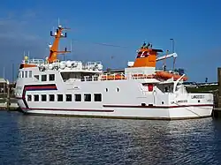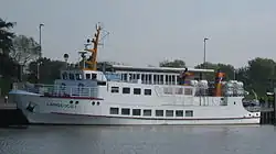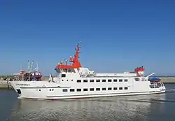 The list of the ferries of the East Frisian Islands contains the ferries currently serving the islands of Borkum, Juist, Norderney, Baltrum, Langeoog, Spiekeroog and Wangerooge. The East Frisian Islands, located between the Wadden Sea and the North Sea in Germany, have been inhabited for centuries by people and have long been a popular holiday region in East Friesland. Traditionally, these ferries serve to transport people and goods, and are a most important link between the mainland and island ports.