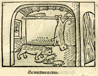 A print showing cats and mice from a 1501 German edition of Aesop's Fables