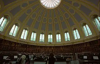 - Blackmail (1929): Blackmail features a chase scene around the British Museum, although due to low light inside the building, the director Alfred Hitchcock made do with blown-up photographs as studio backdrops. The last shot of the film is the dome of the Reading Room.[3][4]