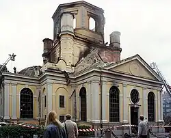 - Dresden Frauenkirche – The Frauenkirche was destroyed in the bombing of Dresden, catching fire on 13 February 1945 and collapsing on 15 February.[45]