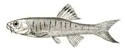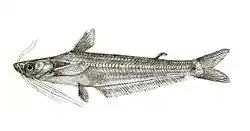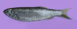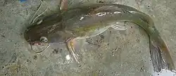 Bengali also has a generic term for three related fish species from the family Polynemidae. A lakkha fish (লাক্ষা মাছ) may be Eleutheronema tetradactylum, Leptomelanosoma indicum or Polydactylus sexfilis.[4] Another example is that of tengra (টেংরা) which is used to denote several species of catfishes from the families Mystus and Batasio.[5][6][a]