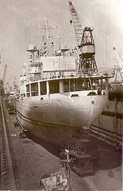 Command and search and rescue ship | A500 Donbas[ar] | 5,520 | 1969 | Returned to Ukraine in April 2014[8] and subsequently destroyed during the Siege of Mariupol (see below) (1991–2001 floating workshop) | |