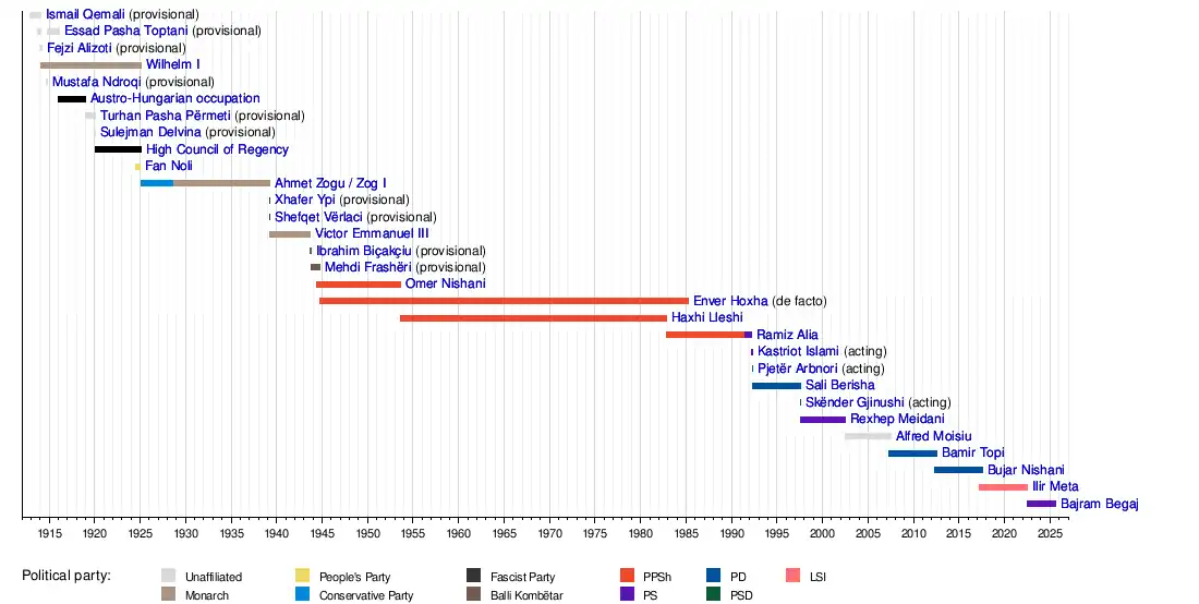 26 May 1944 | 1 August 1953 | 9 years, 67 days | Chairman of the Presidium of the People's Assembly of Albania |