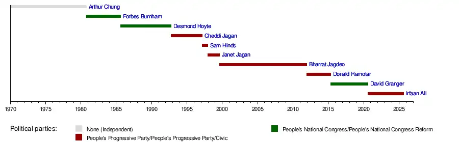 - ^ Lost confidence vote on 21 December 2018; see 2020 Guyanese general election