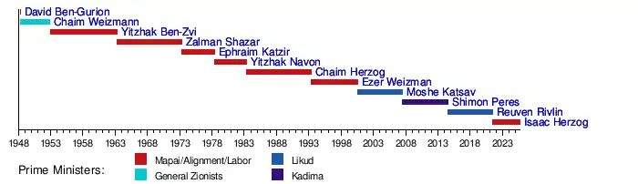 | General Zionists | Mapai | Alignment/Labor | Likud | Kadima | ||||||||||
