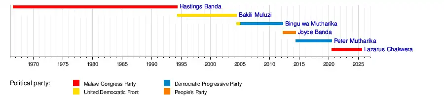 This is a list of the heads of state of Malawi, from the independence of Malawi in 1964 to the present day.