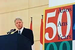 This is a list of international presidential trips made by Bill Clinton, the 42nd president of the United States. Bill Clinton made 55 international trips to 72 different countries (in addition to visiting the West Bank and Gaza) during his presidency, which began on January 20, 1993 and ended on January 20, 2001.[1]