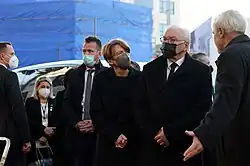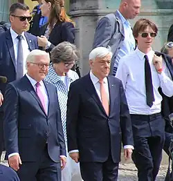 President Steinmeier met with President Prokopis Pavlopoulos, Prime Minister Alexis Tsipras, and the Leader of the Opposition, Kyriakos Mitsotakis. He received an honorary doctorate by the National and Kapodistrian University of Athens, visited the Haidari concentration camp and the ancient city of Messene.[29] | |