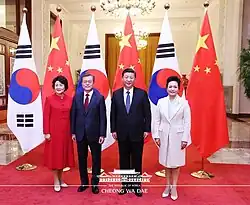 | 26 | Chengdu | December 23–25 | Working visit. Moon attended the China–Japan–South Korea trilateral summit. Also held a bilateral meeting with President Xi Jinping and Japanese Prime Minister Shinzō Abe. |