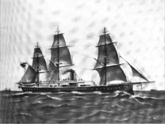 The Preussen class of armored frigates was a group of three ships built in the early 1870s. The lead ship, Preussen, was laid down in 1871 and launched in 1873. Friedrich der Grosse also was laid down in 1871 and launched in 1874. Grosser Kurfürst, although the first to be laid down, in 1869, was the last to be completed, launched in 1875.[39] This was primarily due to the fact that Preussen was built by a private firm experienced with building large ships, while Friedrich der Grosse and Grosser Kurfürst were constructed by newly established and thus inexperienced Imperial dockyards.[36] The ships served in the fleet starting in 1876, when Preussen was commissioned.[40]