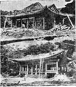 It was spared by the 1553 fire.[109] It was destroyed in the 1876 fire.[101][8] After the 1917 Changdeokgung fire, it was disassembled and moved to Changdeokgung.[82][35] |