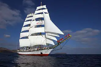 | Star Flyer | 1991 | S | Scheepswerven van Langerbrugge | 366 ft (112 m) | 49.8 ft (15.2 m) | 4-mast barquentine | Steel | 36,000 ft2 | 2,298 GT | cruise ship | ||