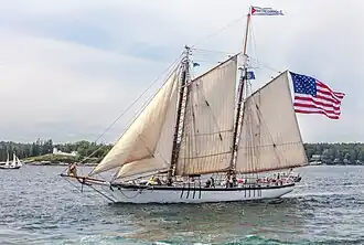 1973 | S | Harvey Gamage Shipyard | 131 ft (40 m) | 24 ft (7.3 m) | 2-mast Gaff Rigged | Wood | 4,200 sq ft (390 m2) | Training Ship | ||