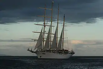 1992 | S | Sociéte Nouvelle des Ateliers et Chantiers du Havre (SNACH) | 636.5 ft (194.0 m) | 65.6 ft (20.0 m) | 5-mast motorsailor | Steel | 26,000 sq ft (2,400 m2) | 14,983 tons | 1,674 deadweight t[1] | Cruise ship[2] |