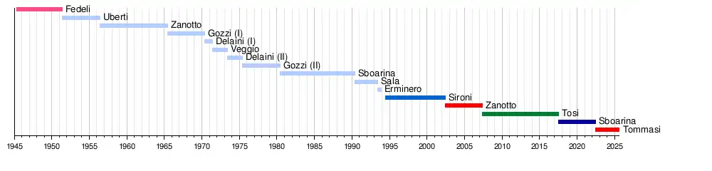 From 1994, the mayor is chosen by the citizens of Verona, originally for a four-year term. In 2000 the term was extended to five years.