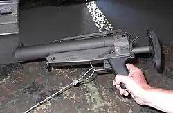 Submachine gun | 9×19mm Parabellum | The weapon is only used by KSK, combat swimmers, military police and long-distance scouts within the Bundeswehr in various versions. It used to be part of the standard equipment of the boarding teams.