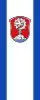 A blue-white horizontal striped flag. The coat of arms with lion and lily is already located on a keystone of the lower vault of the city church tower from the 15th century. Century. The coat of arms was re-granted in 1917 in today's forms and colours by the then Grand Duke of Hesse. The lion is the heraldic animal of the Counts of Katzenelnbogen, who ruled the city. The lion of the Katzenelnbogener can also be seen in the coat of arms of Auerbach (Bensheim-Auerbach), Zwingenberg a.d.B., Pfungstadt, Katzenelnbogen and Sankt Goar. The lily was later inserted into the coat of arms, probably to distinguish lion representations in other coats of arms. The origin of the lily cannot be proven with certainty. However, it is suspected that the lily is supposed to symbolise the city church in Darmstadt, which was originally dedicated to Mother Mary. The lily is considered a sign of purity and is therefore often presented as an attribute of the Virgin Mary. | [1] |