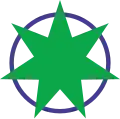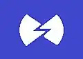 A white flag with a green and blue stylized "ao" (青). White represents cleanliness, blue for Mutsu Bay and the moon and green for the stars. The emblem is a representation of the Polaris star and represents the city's location in Aomori Prefecture, the northernmost prefecture of Honshu. | [1] |
