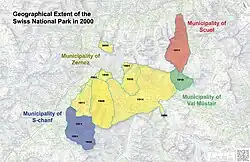 ![]() Location of the Swiss National Park in the canton of Graubünden | |