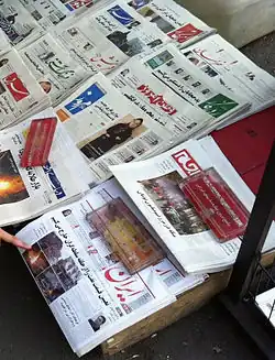 As of 2000 there were 23 Persian dailies, three English dailies and one Arabic daily in the country.[5] In the period between 2000 and 2004 a total of 85 newspapers were closed down in Iran.[6]