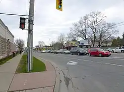 The southern part of Birchmount Road was one of the first parts of Toronto to see suburban development. This development was in the years immediately before and after the Second World War and was thus not reflective of the car-centred design of much of Scarborough. Birchmount is notable for being the terminus of the only TTC streetcar route ever to travel into Scarborough. The Birchmount Loop was for several decades the turning loop for the Kingston Road streetcar.[13] The first lines in the region were built by the Toronto and Scarboro' Electric Railway, Light and Power Company. They were taken over by the TTC, which ran streetcars to Birchmount Loop until 1954. The loop remained in place until 1985, when a condominium was built on the site.[14]