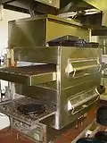 This is a list of oven types. An oven is a thermally insulated chamber used for the heating, baking or drying of a substance,[1] and most times used for cooking or for industrial processes (industrial oven). Kilns and furnaces are special-purpose ovens. Kilns have historically been used in the production of pottery, quicklime, charcoal, etc., while furnaces are mainly used in metalworking (metallurgical furnace) and other industrial processes (industrial furnace).