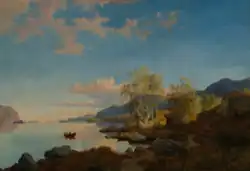 | Aften På Krøderen | 1849 | oil on canvas | 99.5x189 cm | Private Collection | with Adolph Tidemand | [10] | |