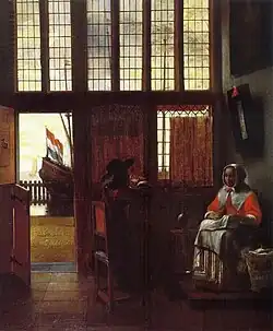 The following is an incomplete list of paintings by Pieter de Hooch, a Dutch Golden Age painter, that are generally accepted as autograph by Peter C. Sutton and other sources. The list is more or less in order of creation, starting from around 1648 when Pieter de Hooch began painting on his own in Delft. Later he moved to Amsterdam and his interiors seem somewhat grander in style. Most of his works are genre scenes involving daily life, but he also made at least one religious allegory.