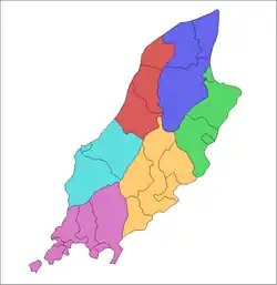and 13 "parish districts" (including Garff, which is made up of two historical parishes: Lonan and Maughold).[ 2]