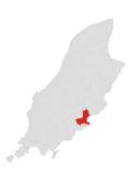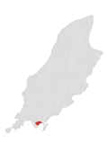 Sheadings and districts of the Isle of Man. The Isle of Man , a self-governing British Crown Dependency , in the Irish Sea has 17 historic parishes and was, until May 2016, divided into 24 districts for administrative purposes. These were 15 remaining parishes , 1 city, 3 towns and 5 villages, each forming the lowest unit of local government in the Isle of Man .[ 1]