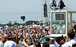 - Pope Francis's visit to the Philippines in January 2015 had become the largest papal event in history with around 6–7 million attended his final Mass at Manila surpassing the then largest papal event at World Youth Day 1995 in the same venue 20 years earlier.[30][31][32]
