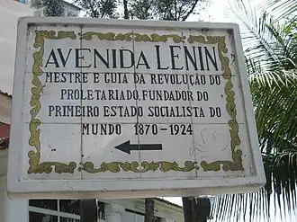 This is a list of places which are named or renamed after Vladimir Ilyich Ulyanov, better known by his alias Lenin. Some or all of the locations in former Soviet republics and satellites were renamed (frequently reverting to pre-Soviet names) after the fall of the Soviet Union, while Russia and aligned countries (mainly Belarus) retained the names of the thousands of streets, avenues, squares, regions, towns, and cities that were given Lenin's name as part of his cult of personality.[1][2][3]