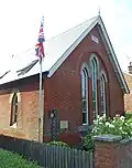 Baptist | – | Sources disagree on whether this chapel on Junction Road was built in 1869 or 1876. The symmetrical façade is of three bays and has brick pilasters with rusticated ornamentation. The centre bay is arched and has a pediment above, and the roof is gabled. It was registered for marriages (with the name Baptist Chapel) in September 1912. | [25][102] [103][104] [105] | |