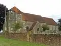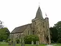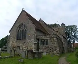 Sussex—the Kingdom of the South Saxons—was one of the last parts of England to be Christianised. It was isolated from other parts of the country because of the thick forest that covered it. When St Wilfrid and his missionaries brought Christianity to the area in the 7th century, they arrived by sea.[3] The new religion quickly spread; the longest established churches in the present Rother area are apparently St Peter's Church in Bexhill's old town and All Saints Church at Icklesham, both founded in 772 (but no 8th-century fabric remains at either location).[4][5] Many more churches were built in the Saxon era, but most were either superseded by larger Norman buildings between the 11th and 13th centuries—as at Sedlescombe[6] and Whatlington[5]—or substantially added to, as at Icklesham.[7] Many places also gained their first church during this period, and the size and opulence of some (such as Ticehurst[8] and Salehurst)[9] reflect the area's iron-industry wealth at the time.[8] Nevertheless, some parishes were initially very large: for example, both Bodiam and Etchingham were served from Salehurst parish church until their own churches were built in the 14th century.[10][11]