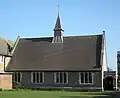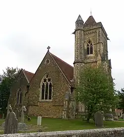 By the 19th century, few villages lacked an Anglican church, and attention turned to restoring and reconstructing ancient buildings—although places such as Hurst Green,[12] Netherfield,[13] Staplecross[14] and Telham[15] did receive churches of their own, often built as chapels of ease to distant parish churches. Some ancient churches still retain most of their medieval fabric and appearance, but churches such as Dallington,[16] Northiam[17] and Sedlescombe[18] were so comprehensively rebuilt in the mid-19th century that they now have a largely Victorian appearance. (Wholesale restoration of churches in the then-fashionable Gothic Revival style was a common and much criticised practice during the Victorian era.)[19] In the 20th century, Anglican churches continued to be provided as residential development spread along the English Channel coast east of Hastings. Building styles varied: at Winchelsea Beach, old-fashioned brick, timber and tile-hanging were used in 1962;[20] at Fairlight Cove, a square wooden box-like structure, intended to be both temporary and portable, has stood since 1970;[21] in Camber, the 1956 replacement for a bombed-out chapel of ease is in an old-fashioned early-20th-century style;[22][23] and at Cliff End on Pett Level an unusual building was purchased and reused. The Admiralty installed a Lifesaving Rocket Apparatus Station on the beach; in 1935 it was converted into the tiny St Nicholas' Church.[24]